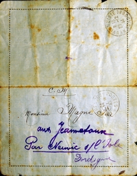 Le combat de Ponchéry avait eu lieu le 21 décembre. Dès le 23 (cf. cachet de la poste militaire), le caporal Charles Robert (12e escouade, 1ère compagnie) écrivait aux parents de Charles Magne :